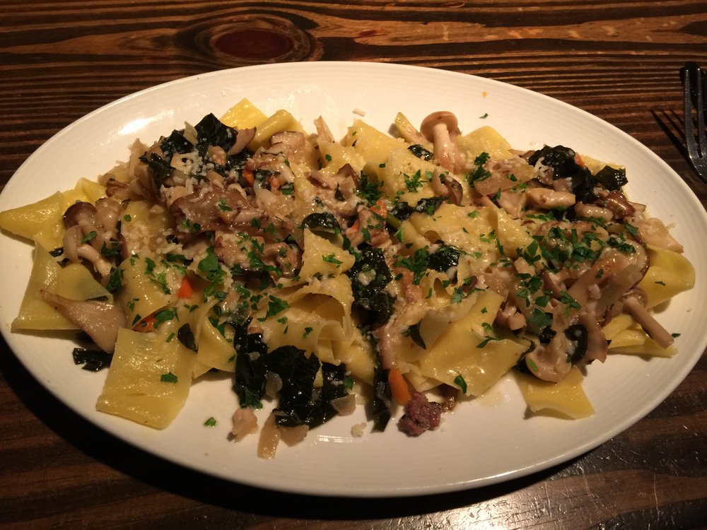 I ordered the Yolk Tagliatelle with wild mushrooms and kimchi and it was delicious. The pasta is made in house so it’s fresh and supple. The sauce was light and refreshing and the kimchi gave it a nice kick. A wonderful palate of flavors and textures.